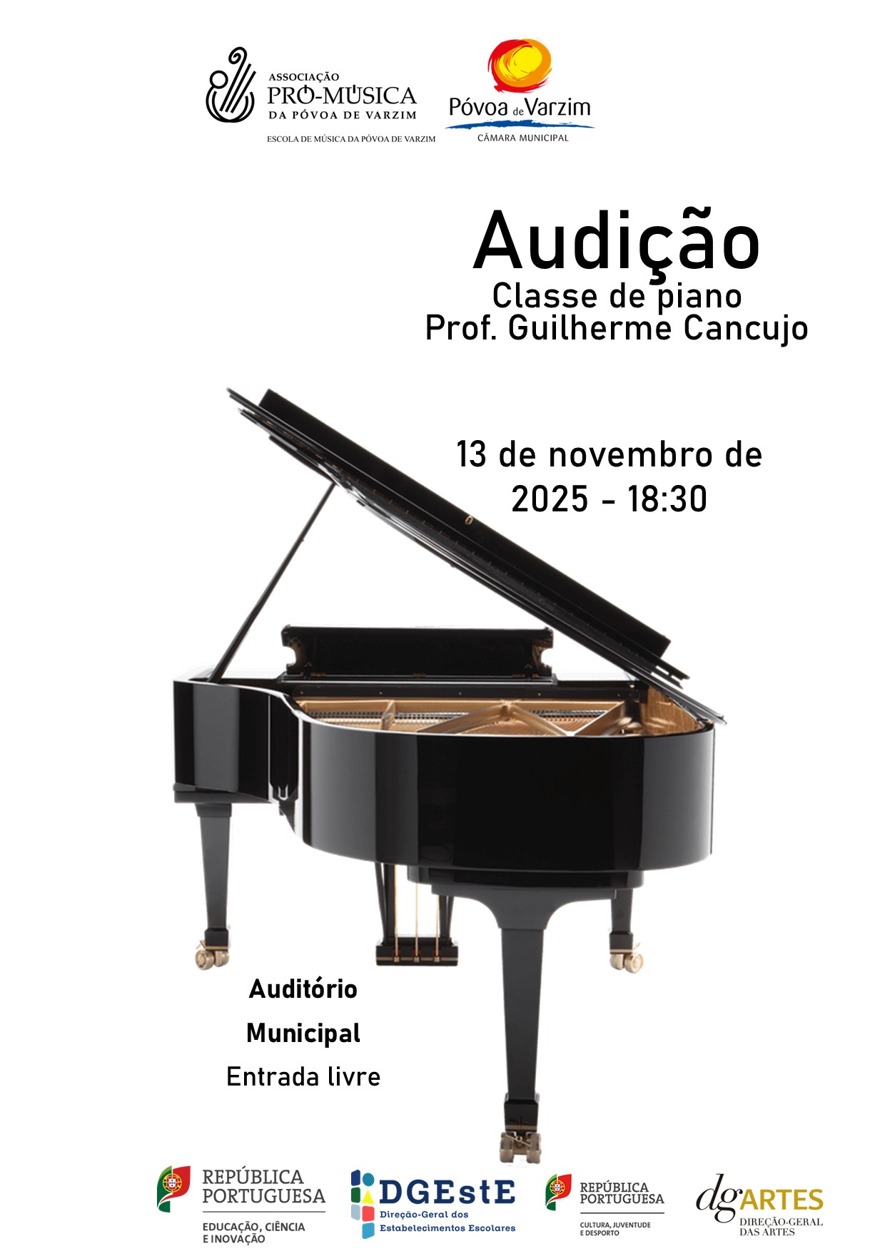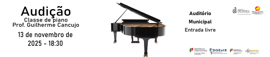 Novembro 17, 2025 Audição Classe de Piano EMPV – Prof. Guilherme Cancujo | Notícia Audição Classe de Piano EMPV do Prof. Guilherme Cancujo No passado dia 13 de novembro de 2025, pelas 18:30, o Auditório Municipal da Póvoa…