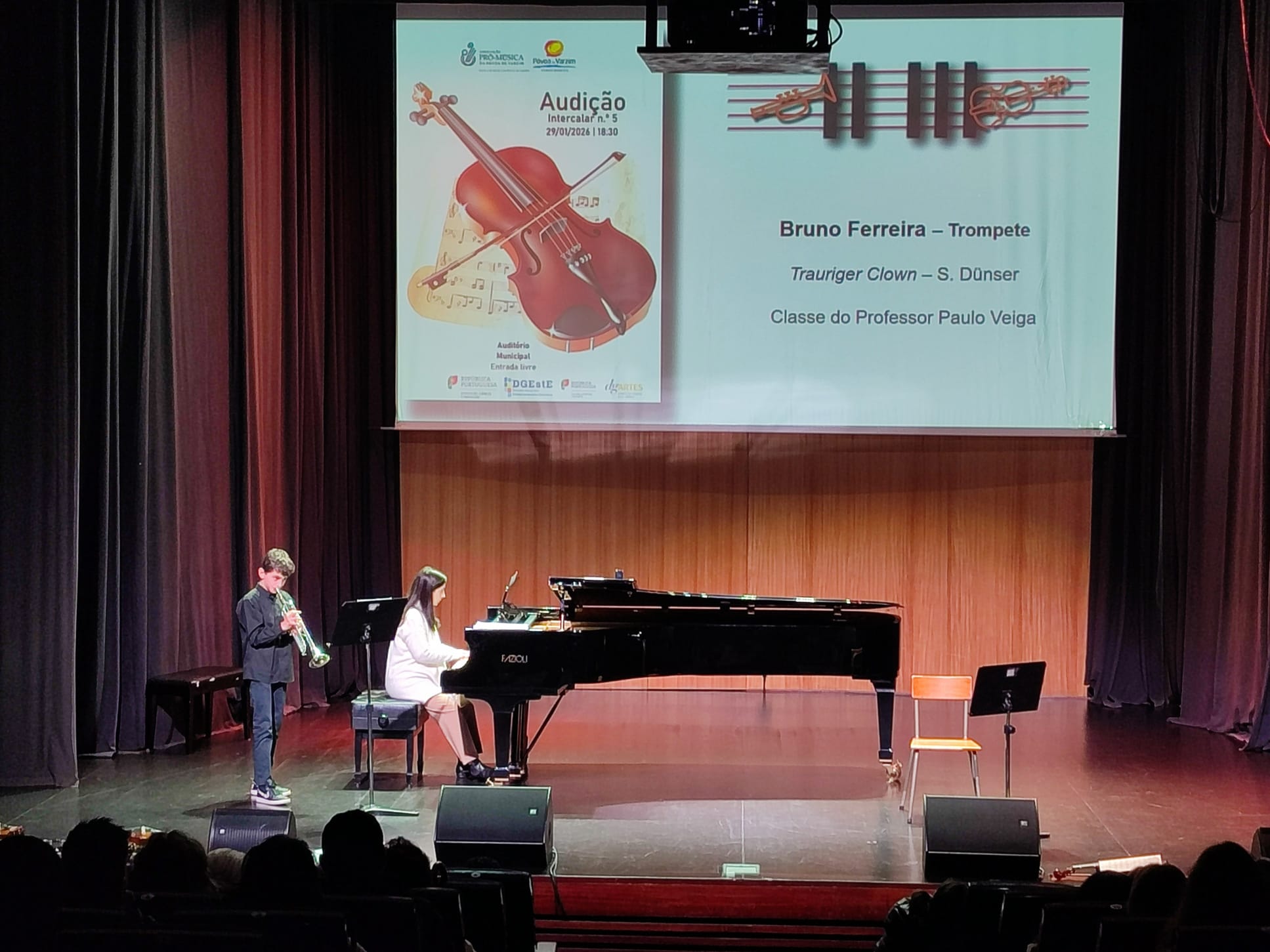 A Audição n.º 5 da Escola de Música da Póvoa de Varzim decorreu no passado dia 29 de janeiro, pelas 18h30, no Auditório Municipal da Póvoa de Varzim, reunindo alunos, professores, famílias e público num momento de partilha musical.