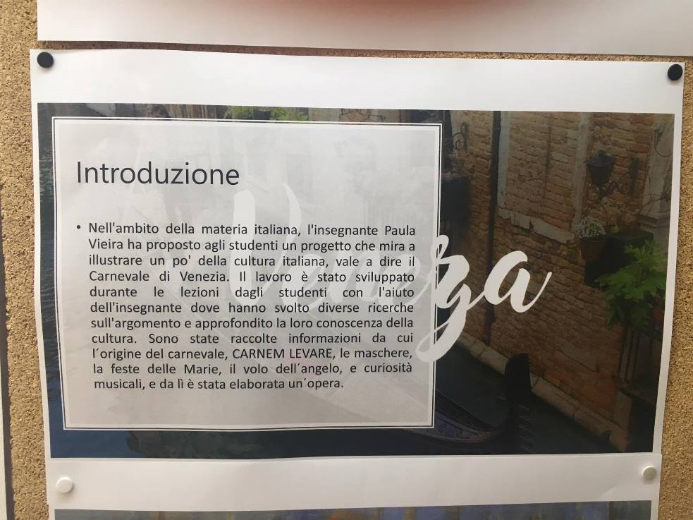 Na terça-feira, dia 14 de fevereiro, foi realizada a atividade sobre a origem e tradições do carnaval de Veneza desenvolvido na disciplina de italiano, lecionada pela professora Paula Dionísio, com a participação exímia dos alunos Leonor Eiras e Rodrigo Madureira e a colaboração preciosa da professora Vânia Oliveira!