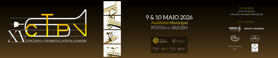 A Escola de Música da Póvoa de Varzim promove o XV Concurso de Trompete, que terá lugar nos dias 9 e 10 de maio de 2026, no Auditório Municipal da Póvoa de Varzim.